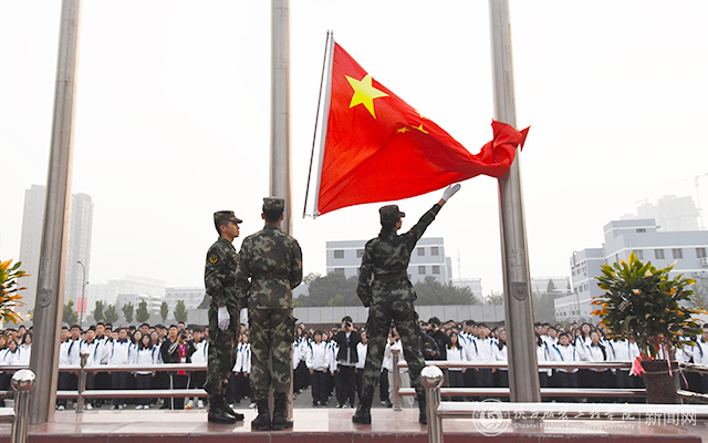 陕服新闻网讯(宣传部魏怀菊)11月4日,我校在东门口喷泉广场举行11月升国旗仪式,董事长吕明,校长张义明,校党委书记胡鸿晓,副校长吕超、李宗领,工会主席刘明夫,校长助理张斌崇、吴俊林、罗文谦,校级领导吕云云等出席,全校教职工及全校师生10000余人参加。胡鸿晓主持。