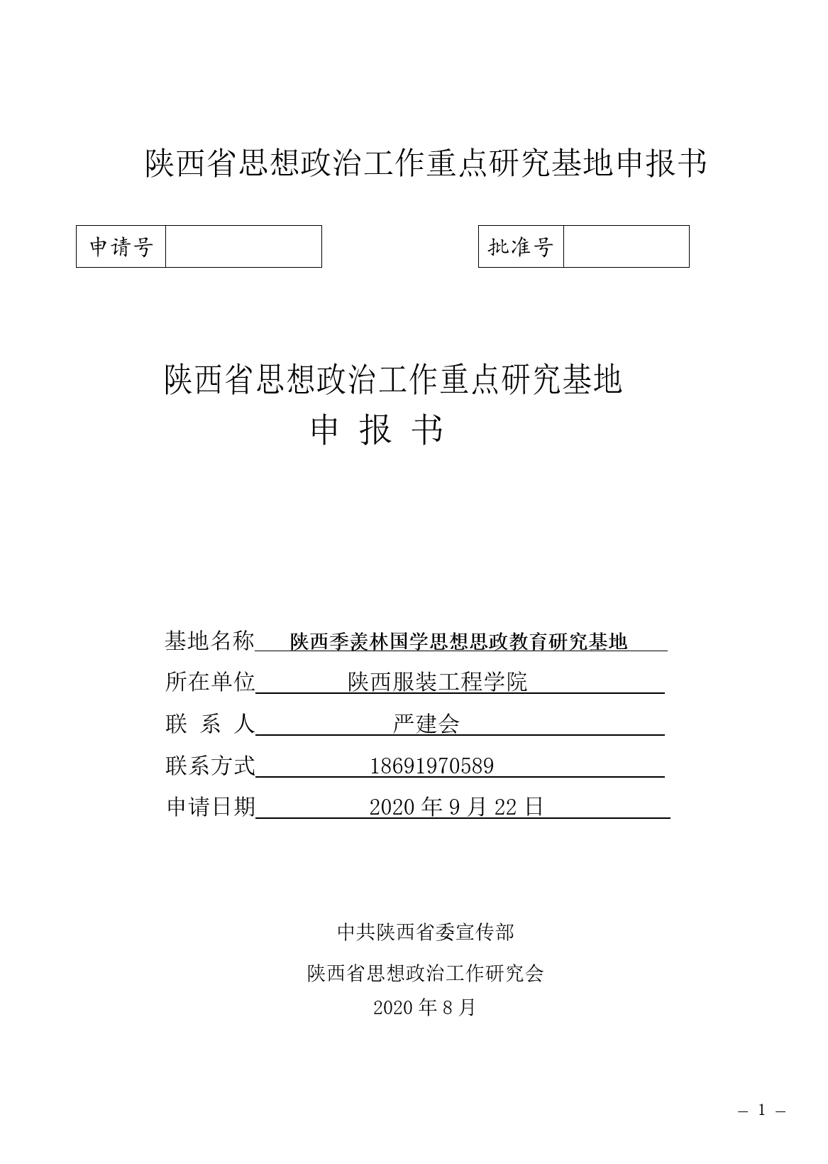 陕服新闻网讯(记者李文斌)9月22日,我校向陕西省委宣传部、陕西省思想政治工作研究会申报在我校成立陕西季羡林国学思想思政教育重点研究基地项目。