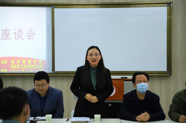 陕服新闻网讯(李文斌)2021年3月23日,雨霁风光,春分天气,千花百卉争明媚。陕服校园沉浸在胜利的喜悦中。刚刚过去的两周,陕服人经历了一场惊心动魄的考验。因为我校有两名学生在坐高铁时不幸与后来确诊的一名新冠肺炎患者同行,被定为B级接触者,最终导致我校100多名师生被隔离观察,全校所有在校师生做核酸检测。所幸,所有师生平安无恙,被隔离师生也都平安回到学校。蔼蔼咸阳都,冠盖日云积。平安二字抵万金,漫卷诗书喜欲狂。为慰问平安归来的百余名师生,也为了总结这次应对突如其来的疫情的经验教训,经济管理学院在B208教室组织召开了疫情中“友情座谈会”。学校副校长李宗领教授、人事处处长王捍政教授、经济管理学院院长杨生博教授、团委书记董良超老师、学生主管陈力军老师,经济管理学院辅导员代表、教职工代表出席座谈会。会计学创新ZC2001班和电子商务2001班的全体同学参加座谈会。经济管理学院副院长李玉玫副教授主持会议。