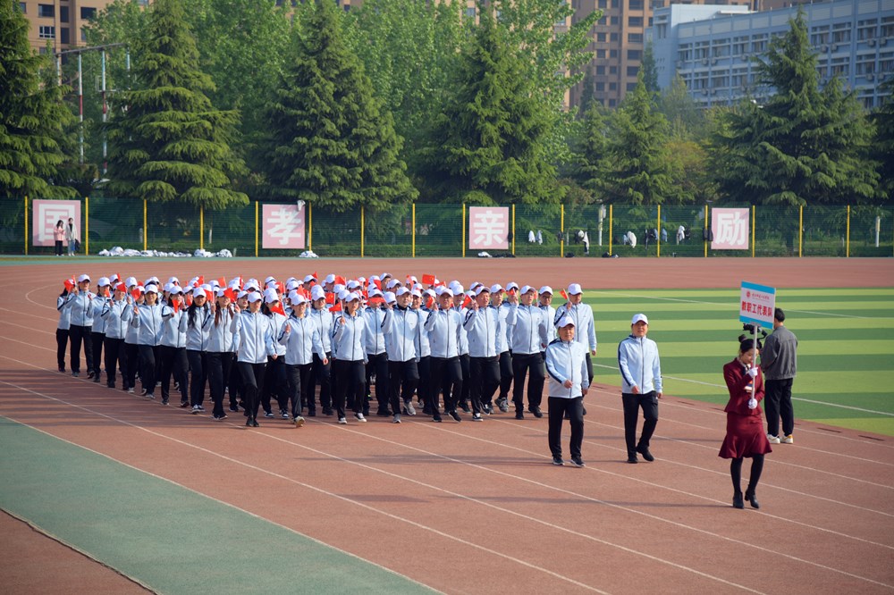 今天是个好日子,春和景明,暖阳淡淡,微风习习。8:30主持人吴俊林宣布:陕西服装工程学院第二十届田径运动会开幕式开始。在雄壮的运动员进行曲伴奏下,仪仗队、裁判员、运动员依次入场经过主席台并绕场一周后在操场列队。全体人员起立奏唱中华人民共和国国歌。