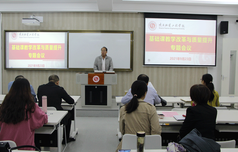 陕服新闻网讯(教务处)2021年9月23日下午,我校在B208教室召开了基础课教学改革与质量提升专题会议,副校长吴俊林教授、校长助理罗文谦教授以及各二级学院(部)院长(主任)、副院长(副主任)、教学秘书、教务处科级以上干部参加会议。