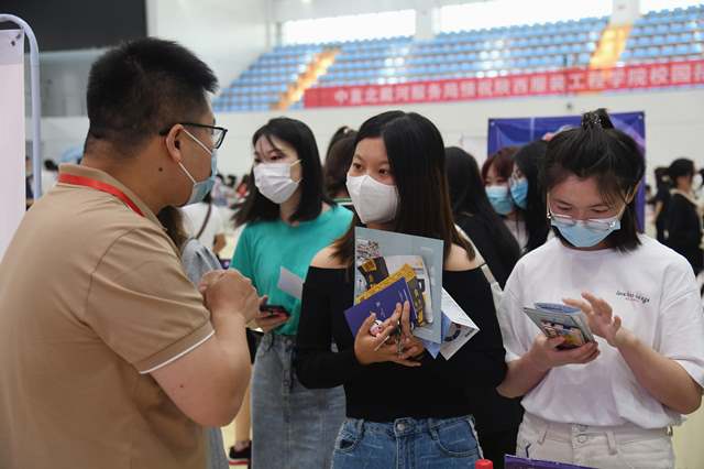 陕服新闻网讯(李文斌)为进一步提升毕业生就业质量,解决毕业生就业困难,我校5月21日在体育馆举行2022届毕业生校园招聘会。校就业工作领导小组成员、毕业班辅导员参加了本次活动。比亚迪、报喜鸟控股、杜克普服装有限公司、九牧王男装、淳化县实验幼儿园等 95家用人单位前来招聘,提供就业岗位4300多个,2022届毕业生分批分次进入体育馆参加现场求职。