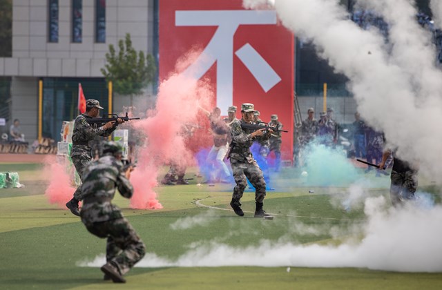 会上,2023级新生进行了精彩的军训汇报表演,赢得了在场师生经久不息的掌声。