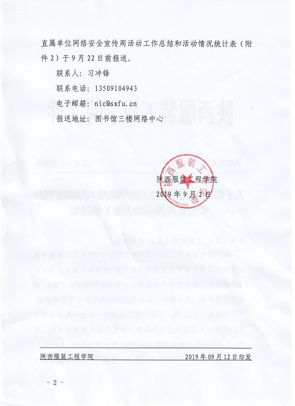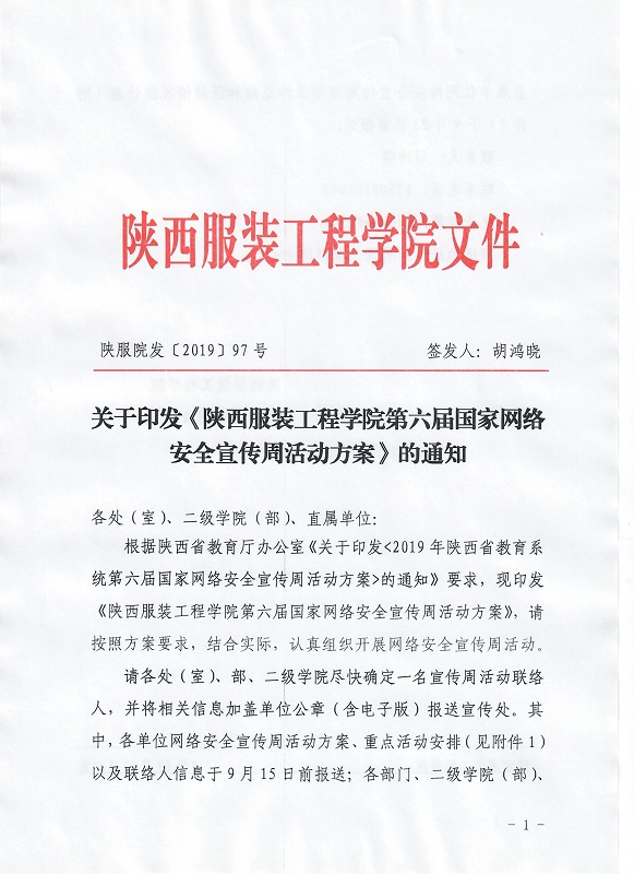 关于印发“陕西服装工程学院第六届国家网络安全宣传周活动方案”的通知