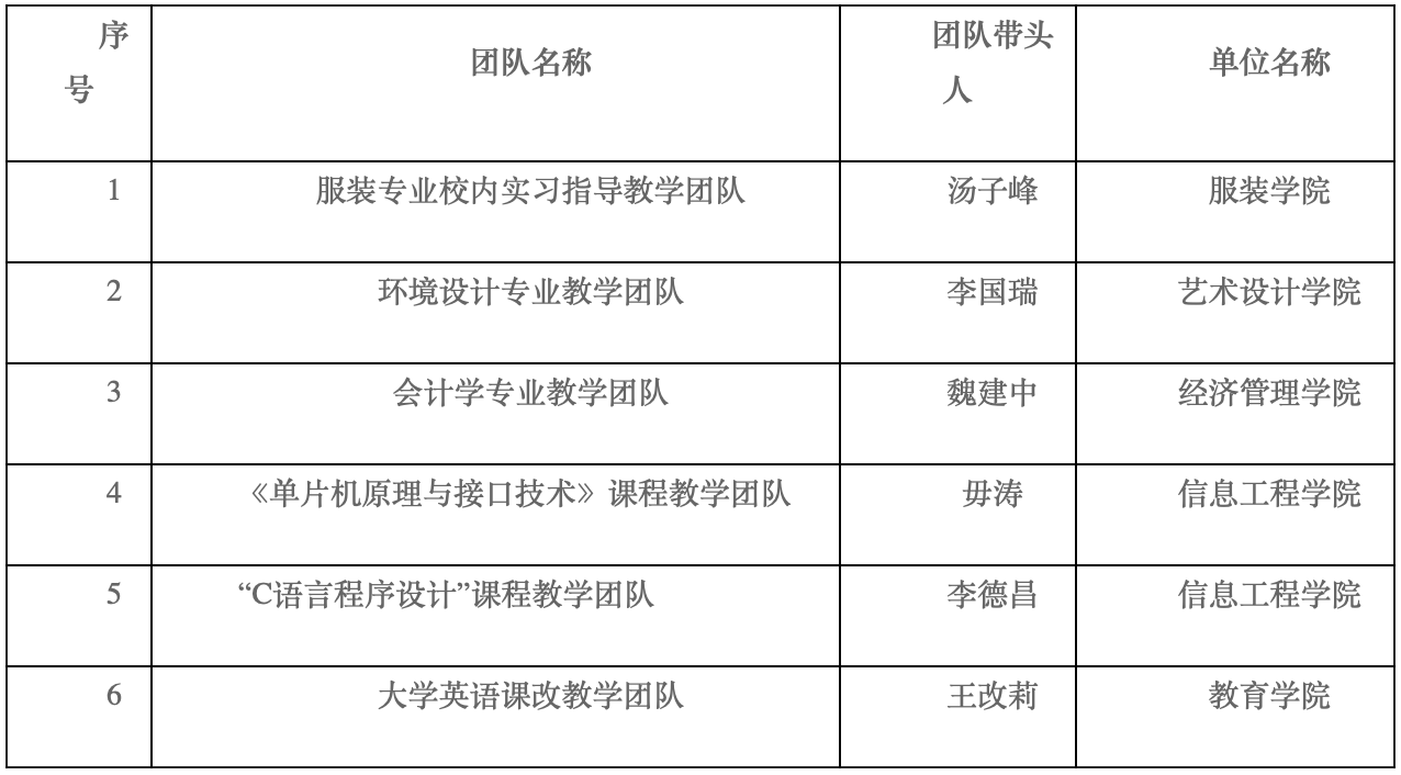 根据《关于开展2019年校级教学团队建设项目申报工作的通知》(陕服教发[2019] 20号)精神,经各学院(部)申报、学校评审,现将评审结果予以公布: