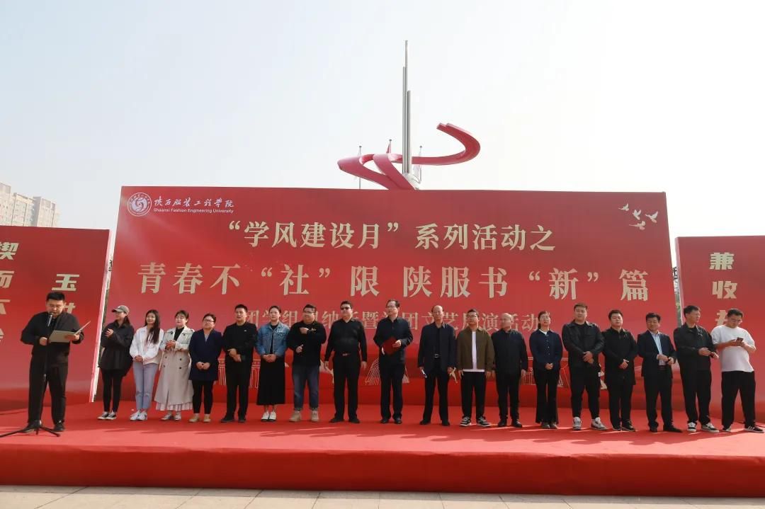 陕服新闻网讯(贾永旺)为进一步推进校园文化活动的蓬勃发展,提高学生社团专业化发展水平和品牌化影响效应,为新同学提供展示自我风采的平台和互相交流的机会,引领带动广大同学锻炼本领、提高素养,实现德智体美劳全面发展,我校于 10 月 15 日在喷泉广场举办“学风建设月”系列活动之“青春不‘社’限,陕服书‘新’篇”团学组织纳新暨社团文艺展演活动。