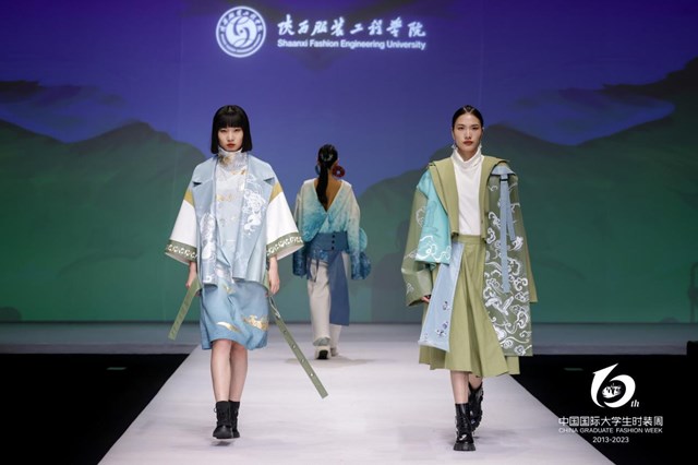 5月19日,服装学院院长张莉、产业学院院长徐彬、产业学院副院长吴朝辉、服装学院副院长刘红、服装学院副院长骞海清、服装学院办公室主任暨表演系主任呼啸带领表演系八位优秀学生符源、高艺敏、贺子俊、孟玥西、王冠群、杨欣雨、李惜琛、殷萌进京参加2023中国国际大学生时装周陕西服装工程学院毕业作品专场发布会。