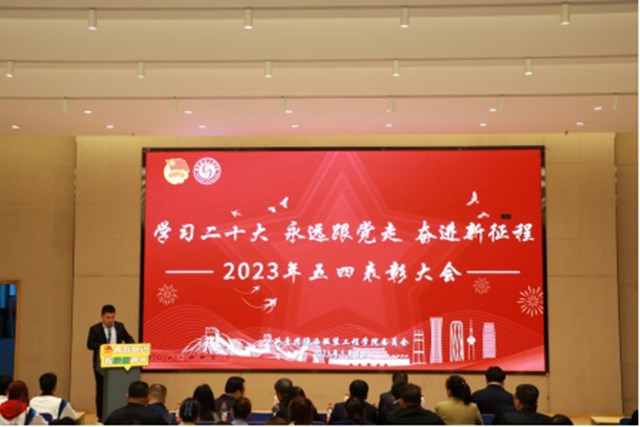 陕服新闻网讯(校团委) 5月4日下午,学校在E1-4举行“学习二十大,永远跟党走,奋进新征程”2023年五四表彰大会。校长姜寿山、校党委书记王军周、党委副书记李宗领、校长助理、学工部部长刘继兵、党委组织部部长伍建成、校团委书记董良超、各学院分管院长、学工办主任、团总支书记、副书记等老师出席表彰大会。大会由校团委副书记贾永旺主持。
