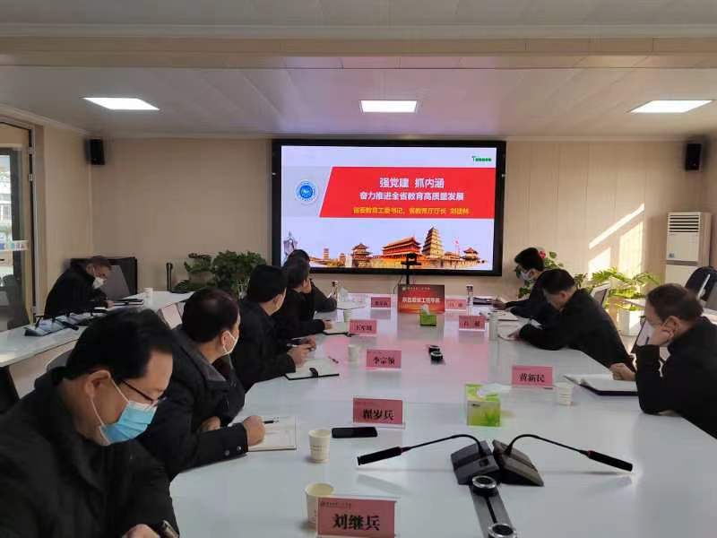 会议采取视频方式召开。在省委教育工委、省教育厅设主会场,各地各高校设分会场。董事长吕明、副董事长吕超、校长姜寿山、党委书记(督导专员)王军周、常务副校长黄新民、副校长李宗领,校长助理翟岁兵、刘继兵及相关职能部门负责人在我校分会场参加会议。