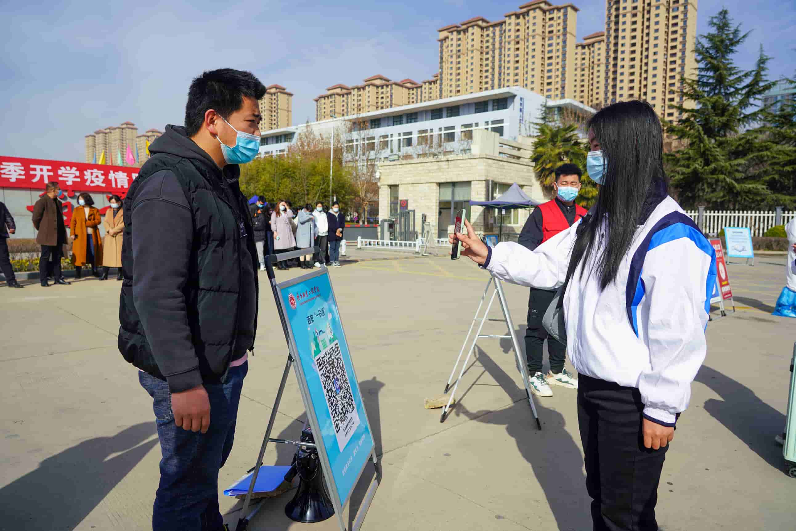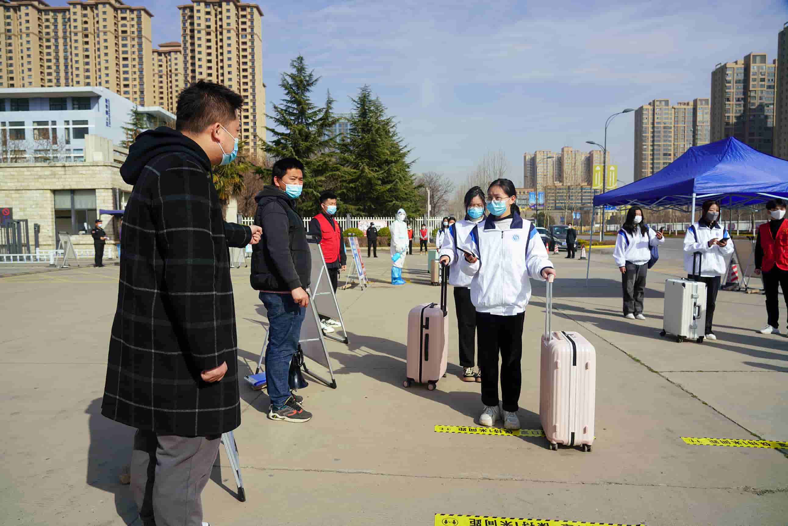 在演练工作组的指挥下,学生志愿者和防疫工作人员密切配合,相继开展了学生“入校报到流程演练”、“食堂就餐演练”、“图书馆学习突发情况应急演练”和学校留观室“异常情况处置演练”四个环节,以情景再现的方式让学生了解掌握返校报到工作流程和疫情防控突发应急处置预案。