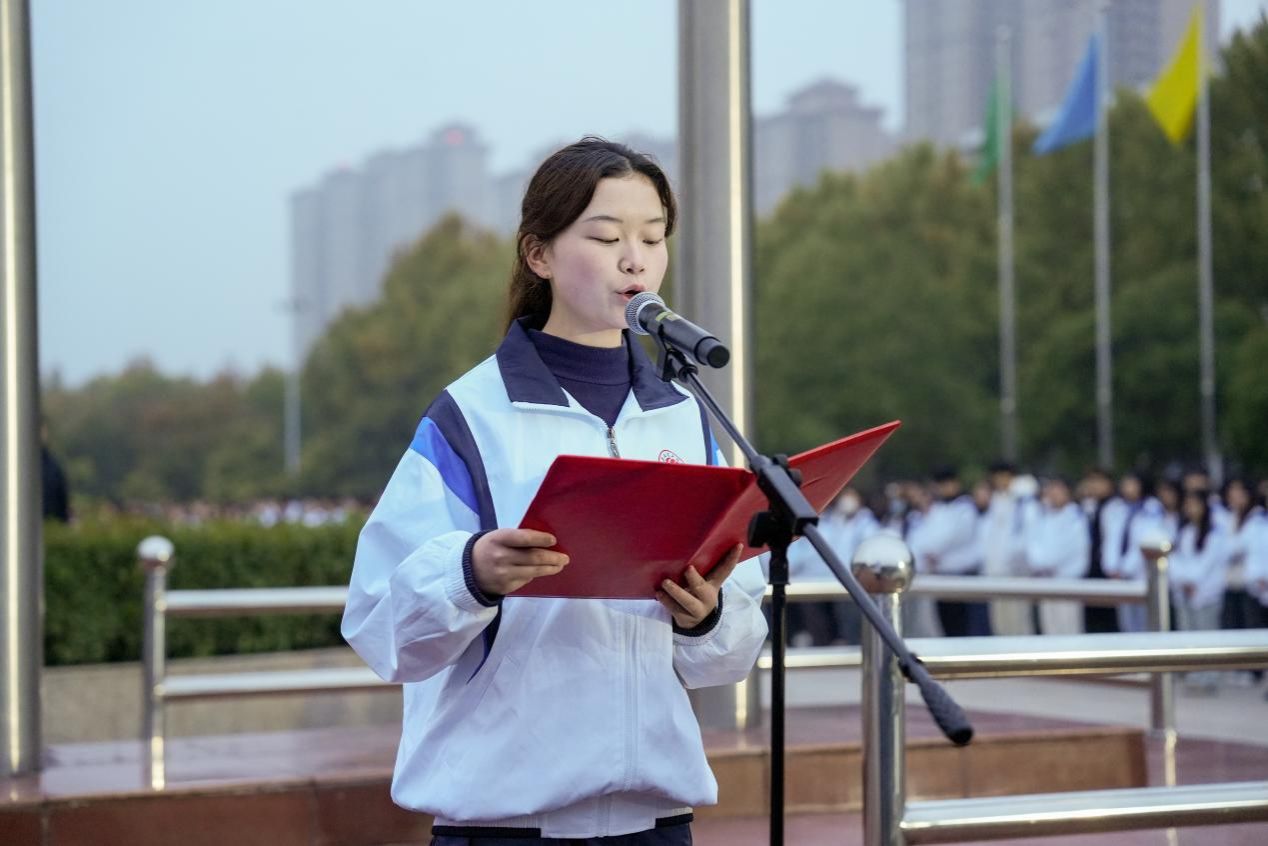 她倡议大家携起手来,将爱党爱国爱校的情怀转化为实际行动,努力学习,积极进取,努力成为最好的自己、最好的学校,为实现中华民族伟大复兴的中国梦贡献青春力量。