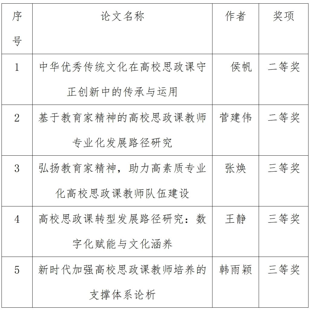 我校教师论文获奖情况