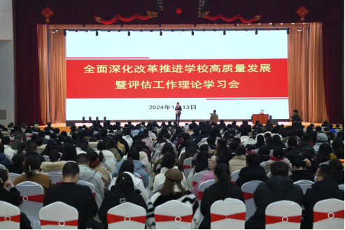 1月13日,在2024年全国教育工作会议闭幕第一天,镐京国际教育集团董事局主席吕明主持召开全面深化改革推进学校高质量发展暨评估工作理论学习会,传达学习全国教育工作会议精神,开展系统高效高质量学习培训,部署集团旗下高校2024年全面深化改革目标任务,以全面变革的力量,破解发展难题,突破转型瓶颈,推进教育事业高质量发展。镐京国际教育集团旗下陕西服装工程学院、陕西科技大学镐京学院党政领导、全体教职员工1500余人参加会议。